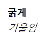 **굵게** 또는 *기울여서* 글을 강조할 수 있다. 글 앞/뒤에 `*`나 `_`를 1번(기울게) 혹은 2번(굵게)을 입력하여 감싸면 된다.