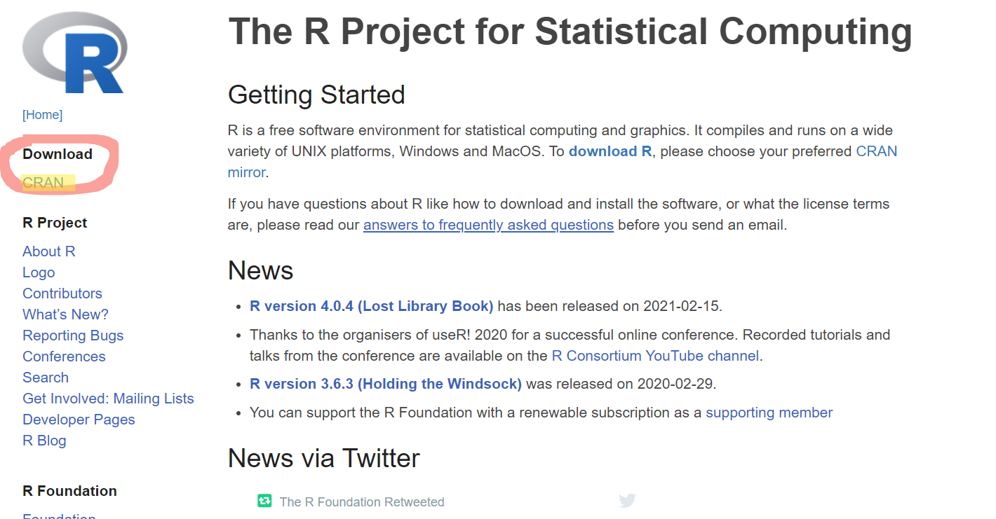 1. r-project 사이트에 접속해서 다음과 같이 나온다면 Download의 CRAN을 클릭한다.