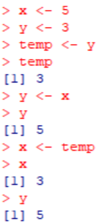 temp <- y # temp 변수에 y의 값을 대입