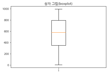 plt.title('상자 그림(boxplot)')
