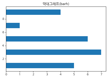 barh() 함수를 통해 막대그래프를 수직이 아닌 수평 방향으로 그릴 수 있다.
