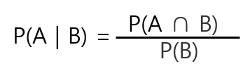 - 조건부 확률 : 사건 B가 일어났다는 조건하에 사건 A가 발생할 확률