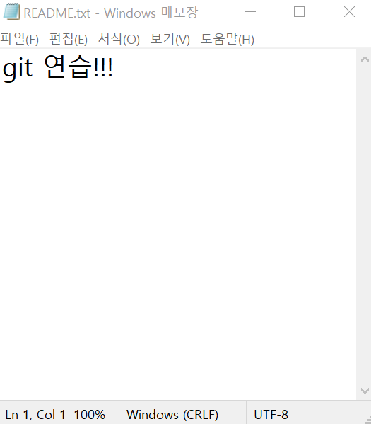 2. README.txt 파일을 열어 원하는 말을 적어주고 저장한다.