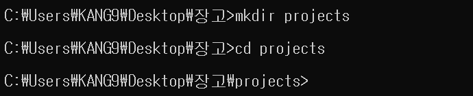 1. 장고 프로젝트는 여러 개가 될 수 있으므로 프로젝트를 모아 둘 프로젝트 루트 디렉터리 생성을 해야 함. 아래와 같은 명령어로 [projects]라는 폴더를 생성