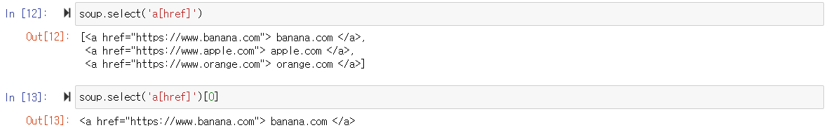 아래는 <a> 태그의 속성이 href인 것을 추출한 것이다.