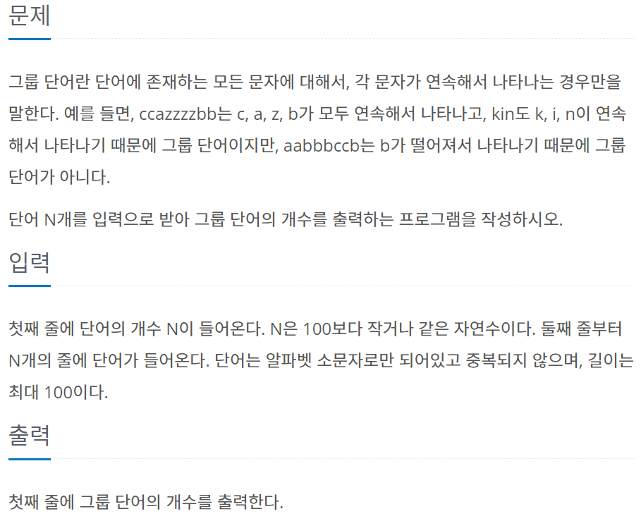 [파이썬, Python] 백준 1316번 : 그룹 단어 체커 본문