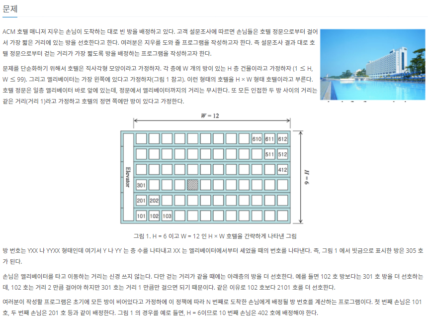 백준 10250번 : ACM 호텔