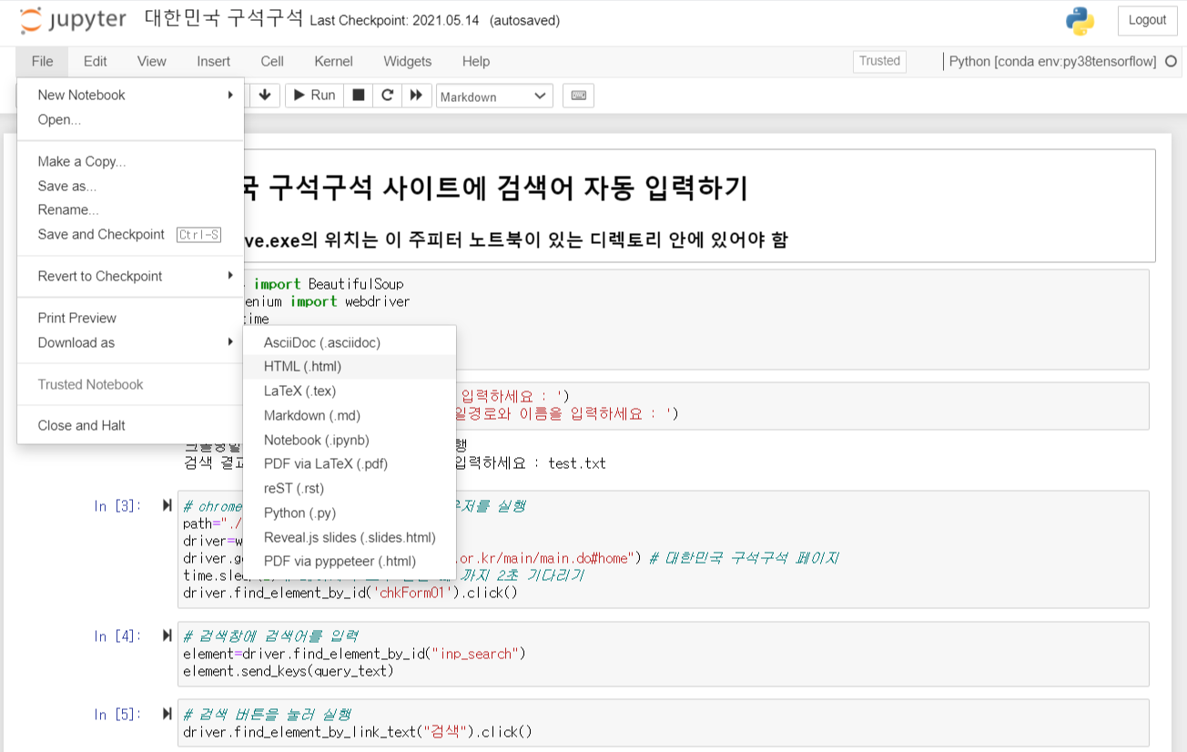 | 주피터 노트북(jupyter notebook) 파일 pdf 변환 - nbconvert (0) | 2021.06.17 |