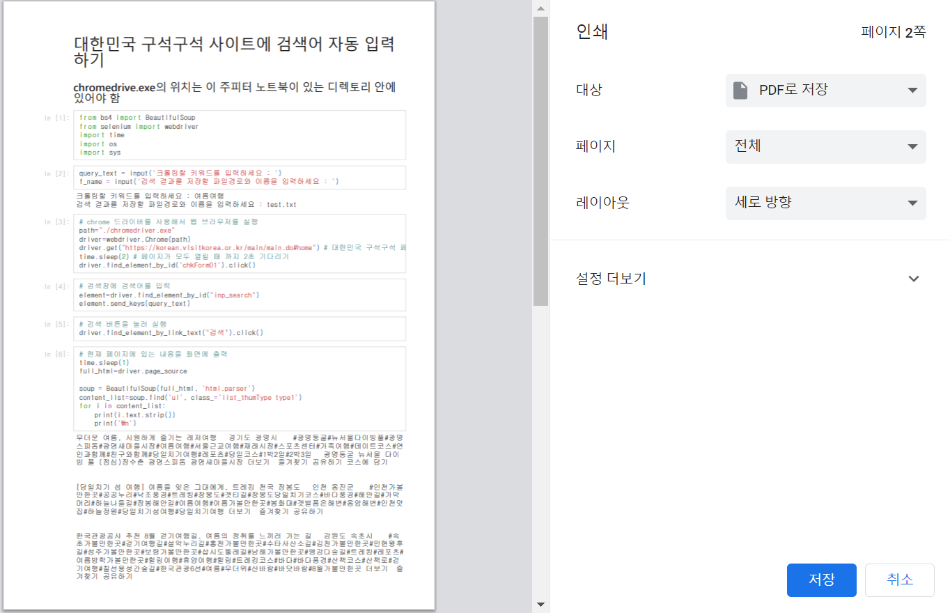 2. HTML 파일을 열고 인쇄를 통해 pdf로 저장하는 방법