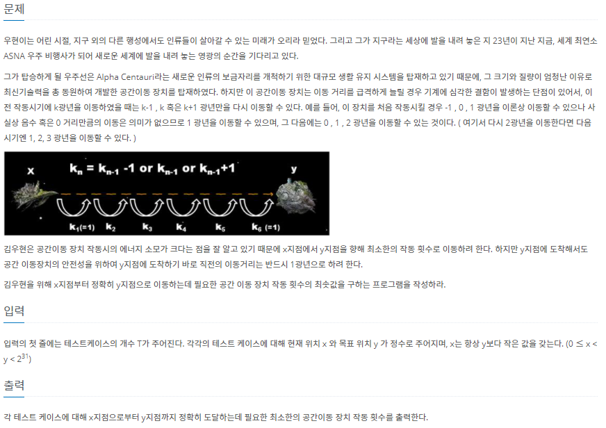 [파이썬, Python] 백준 1011번 : Fly me to the Alpha Centauri 본문