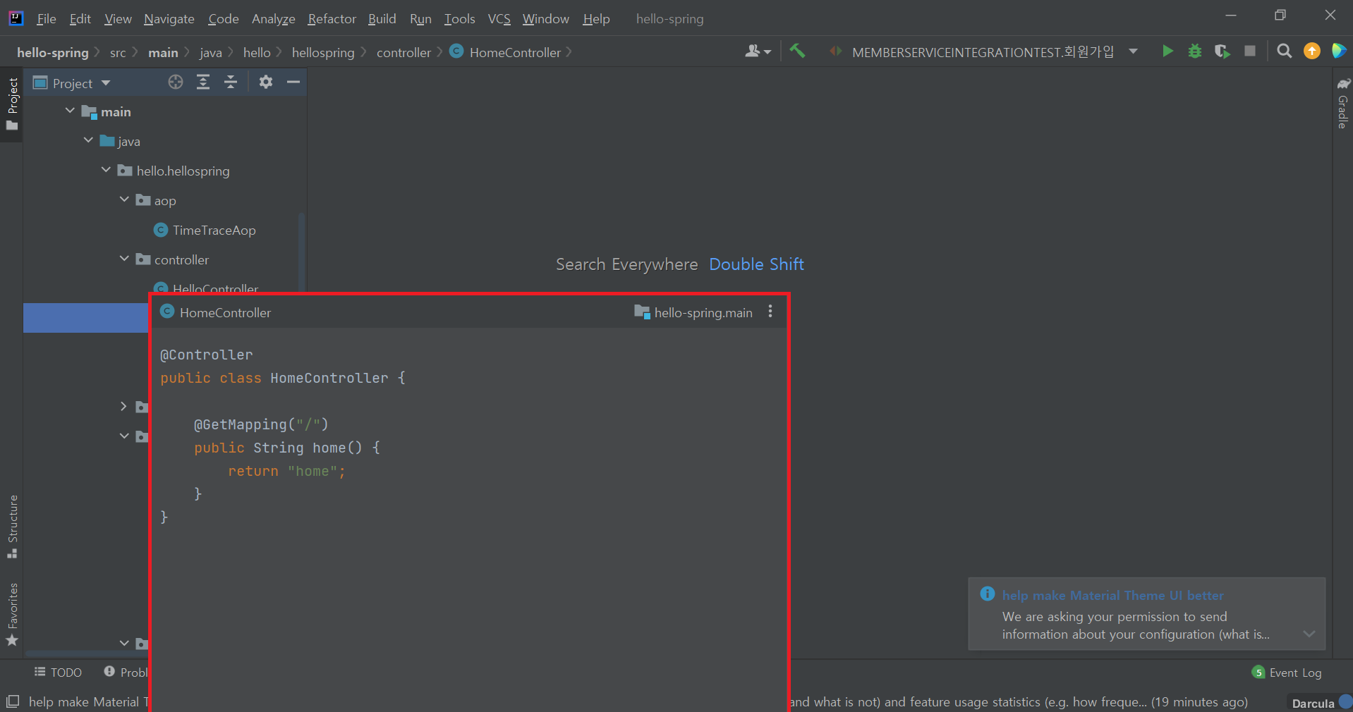 전체 검색은 경로 내 검색보다 더 큰 범위를 검색할 수 있다. Shift 키를 두번 눌러주면 된다.