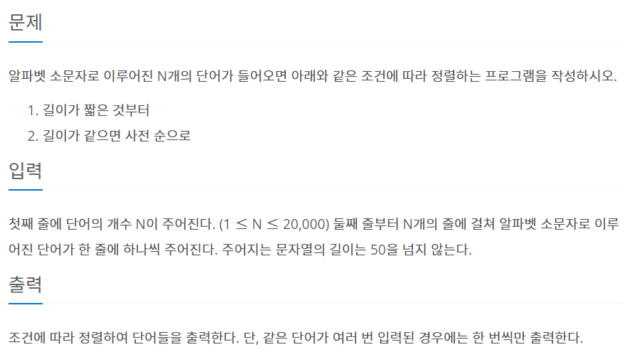 [파이썬, Python] 백준 1181번 : 단어 정렬 본문