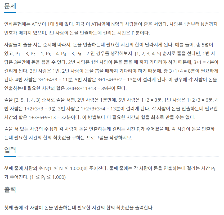 [파이썬, Python] 백준 11399번 : ATM 본문