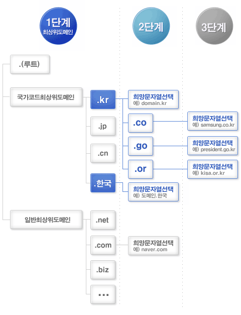| 예시 | com, net, org, biz, info, name, asia, jobs, mobi, tel, travel, xxx | kr, jp, cn, in, mx, us, de, tv, me | email, coffee, camera, rent, website, xyz, news, blackfriday, loan |
