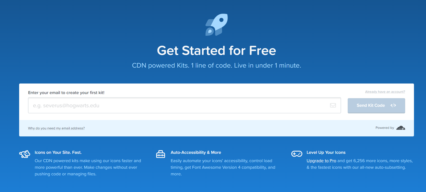 Font Awesome 홈페이지의 Start 메뉴에서 메일 주소를 입력하고 메일에서 confirm 링크를 따라가서 비밀번호를 설정해준다. 나머지는 pass하고 확인을 누르면 kits가 생성되면서 스크립트 한줄이 나온다. 그 스크립트 한줄을 <head> 태그 안에 써주면 설정이 완료된다.