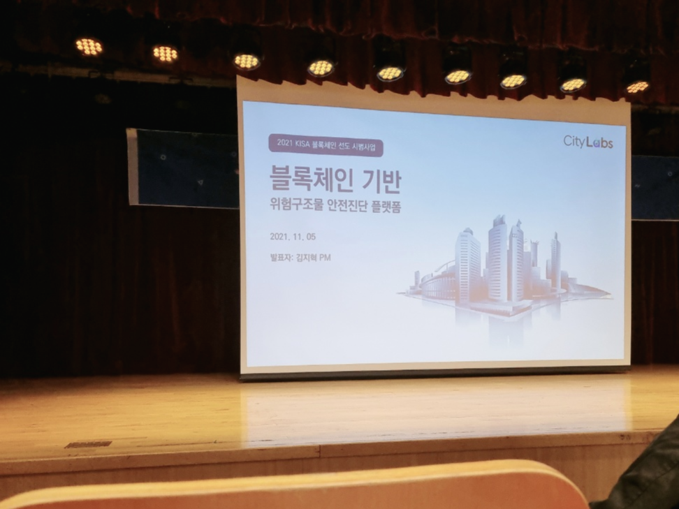 시티랩스는 지노시스, 씽크제너레이터, 방재시험연구원과 함께 블록체인 기반 위험 구조물 안전진단 플랫폼 프로젝트를 진행하고 있다. 건물에 부착된 기울기 센서와 크랙 센서를 사용해 건물에 대한 데이터를 수집하고 SKT의 LoRa 네트워크를 통해 블록체인 네트워크에 저장되어 신뢰할 수 있는 데이터로 저장한다.