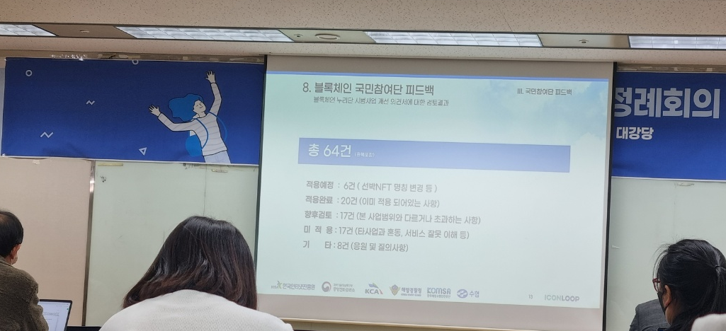 2차 정례회의는 각 프로젝트별로 누리단의 의견들이 어떻게 반영되었고 어떤 부분 때문이 반영이 되어지지 않았는지에 대한 발표로 진행되었다. 내가 의견을 냈던 부분이 반영되거나 향후 검토 사항으로 들어간 프로젝트들을 보니 뭔가 기분이 묘했다.