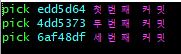 위의 명령어를 입력하면 아래 왼쪽 사진과 같이 3개의 커밋에 대해서 pick이라고 되어 있는 부분이 있을 것이다. 맨 위의 커밋을 제외하고 나머지 pick을 s 혹은 squash로 변경해준다.