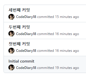 그 다음 아래 명령어를 통해 원격 저장소에 push해주면 아래와 같이 커밋이 변경된 것을 확인할 수 있다.
