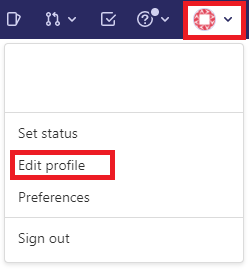 이제 깃랩에서 발급한 ssh-key를 등록하는 과정을 정리하겠다. 우선 깃랩 홈페이지의 우측 상단의 프로필 이미지를 누르고 Edit profile 탭을 클릭한다.