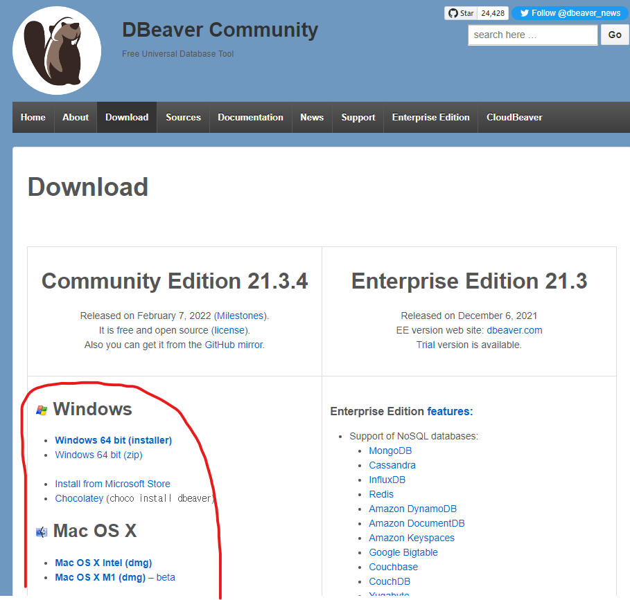 디비버란 SQL 클라이언트이자 데이터베이스 관리 도구이며 아파치 라이선스로 배포되는 자유 오픈 소스 소프트웨어이다. 디비버도 유료 버전도 있긴 하지만 블로그 후기와 개인적으로 사용해보니 개인이 쓰기에 무료 버전도 충분한 것 같다.