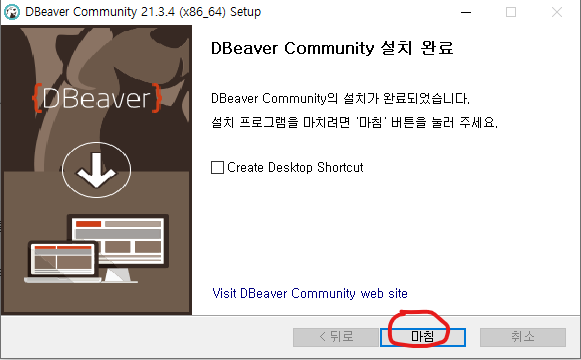 마지막으로 마침 버튼을 클릭하면 설치가 완료된다.