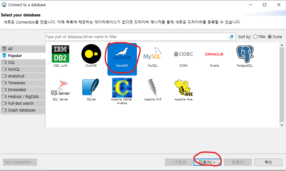 아래 화면이 나오면 연결하고자 하는 DB를 선택한다. 나는 MariaDB를 사용할 것이라 MariaDB를 선택했다.