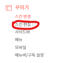 그리고 난 뒤, 블로그 관리 페이지에서 꾸미기 메뉴의 스킨 편집 탭을 클릭한다.