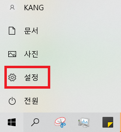 우선 윈도우 키를 누른 뒤 톱니 바퀴 모양인 설정 버튼을 누른다.