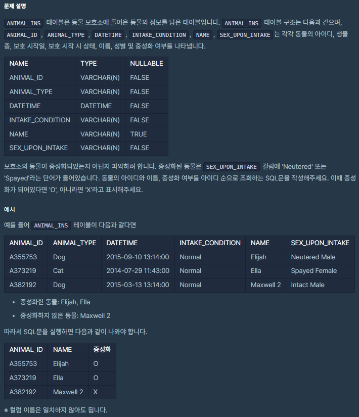 [프로그래머스] 중성화 여부 파악하기 - MySQL