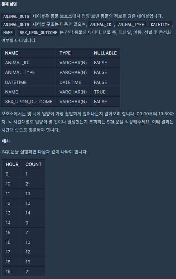 코딩테스트 연습 - 입양 시각 구하기(1)