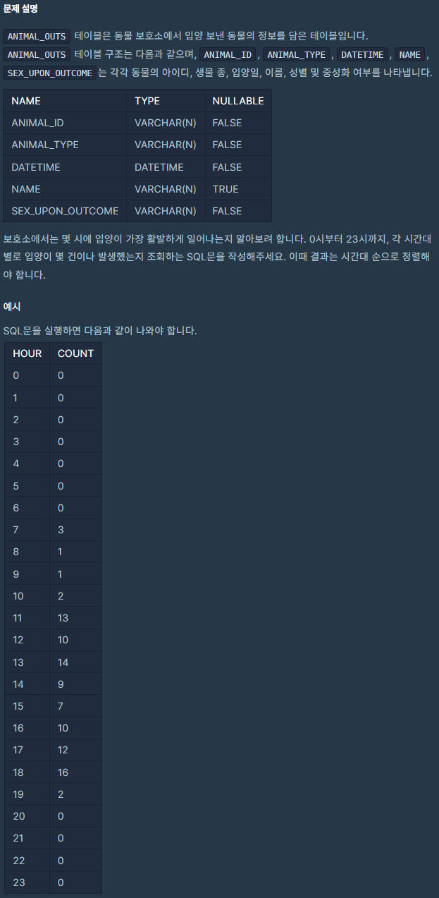 코딩테스트 연습 - 입양 시각 구하기(2)