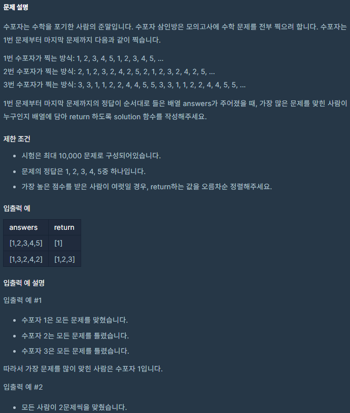 코딩테스트 연습 - 모의고사