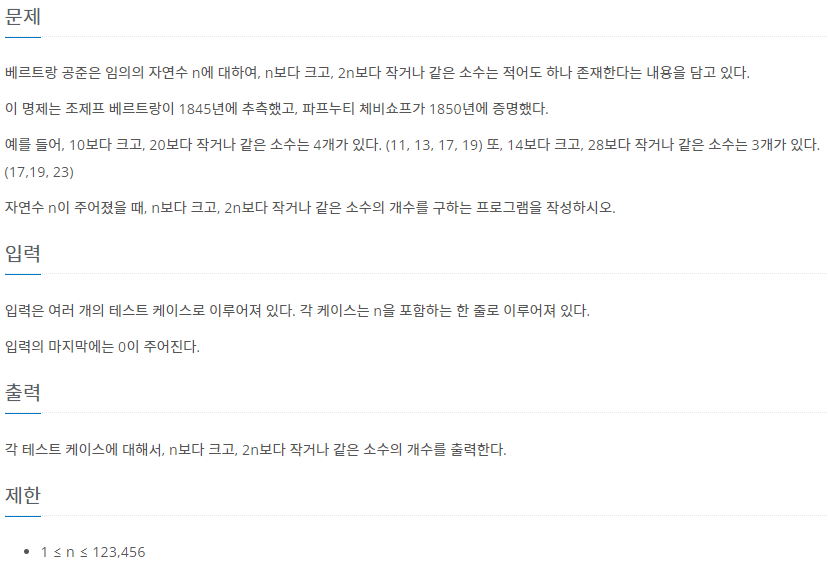 [파이썬, Python] 백준 4948번 : 베르트랑 공준 본문