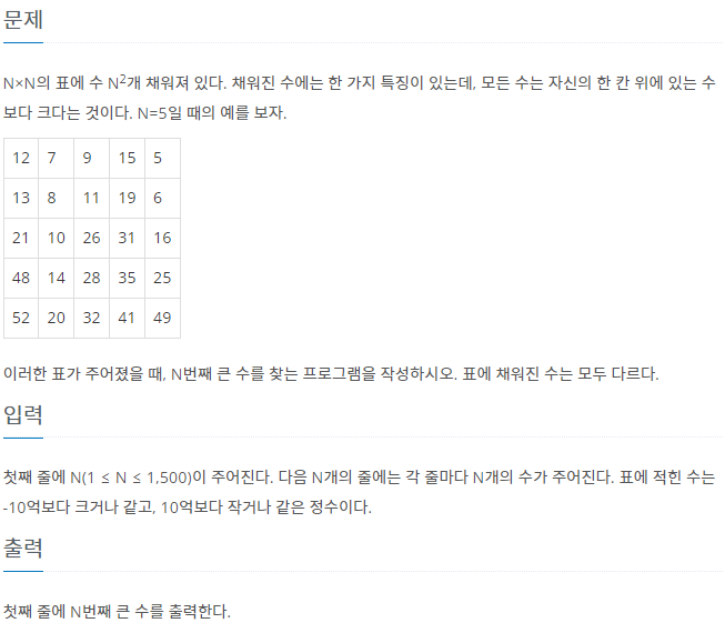 백준 2075번 : N번째 큰 수