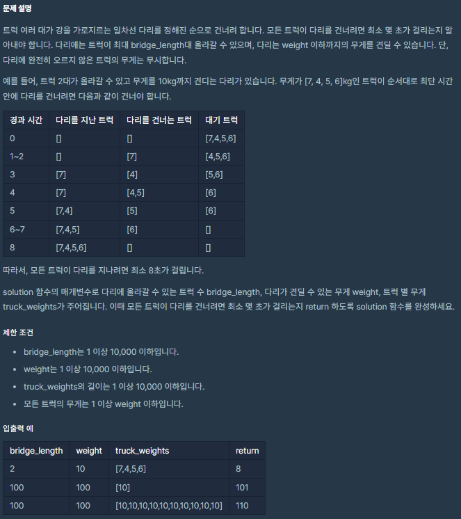 https://programmers.co.kr/learn/courses/30/lessons/42583