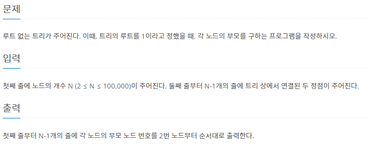 [파이썬, Python] 백준 11725번 : 트리의 부모 찾기 본문