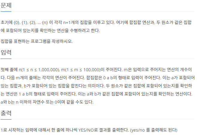 백준 1717번 : 집합의 표현