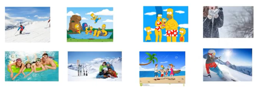 - 주어진 8개의 사진에서 cartoon은 총 4개가 있으며 cartoon은 겨울 가족 여행사진이 아니다. 따라서 cartoon의 엔트로피는 E([0+,4-])이다.