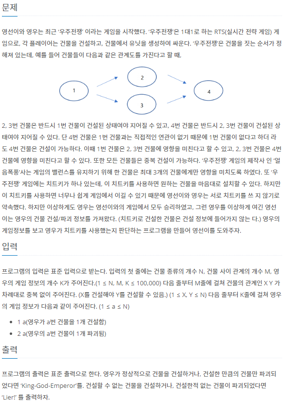 [파이썬, Python] 백준 14676번 : 영우는 사기꾼? 본문
