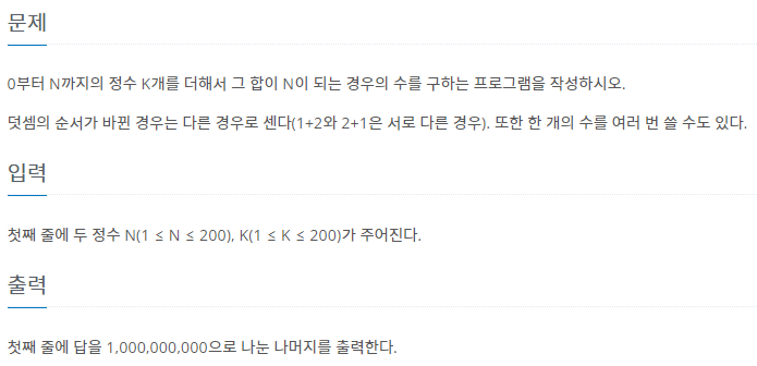 [파이썬, Python] 백준 2225번 : 합분해 본문