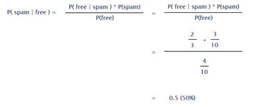 최종적으로 P(spam|free)는 아래와 같이 구할 수 있다.