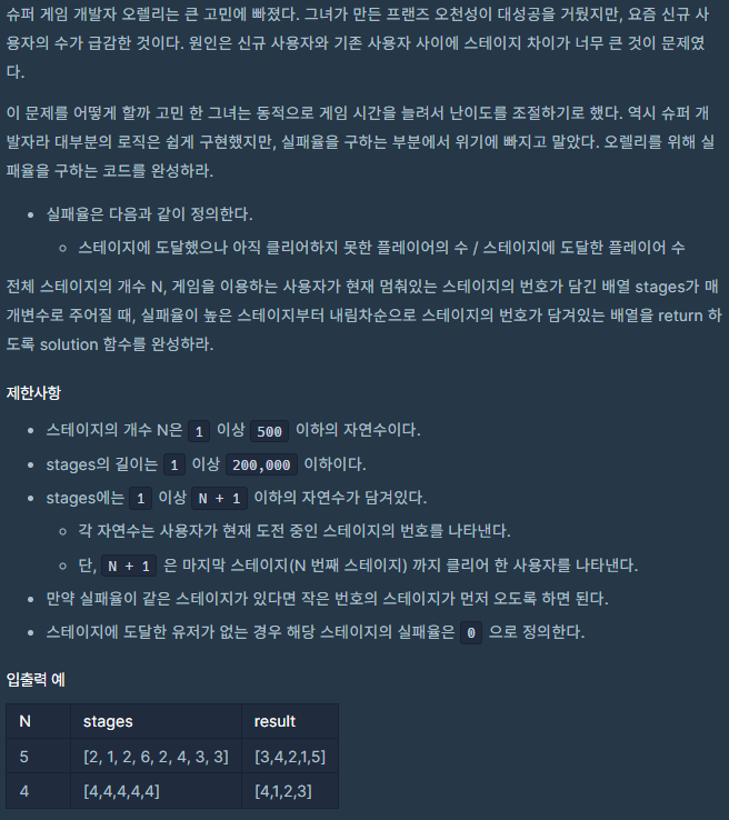 코딩테스트 연습 - 실패율