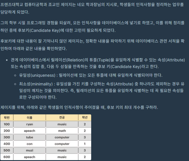 for combi in combinations(range(len_key), i): # 후보키가 될수 있는 key들의 전체 조합