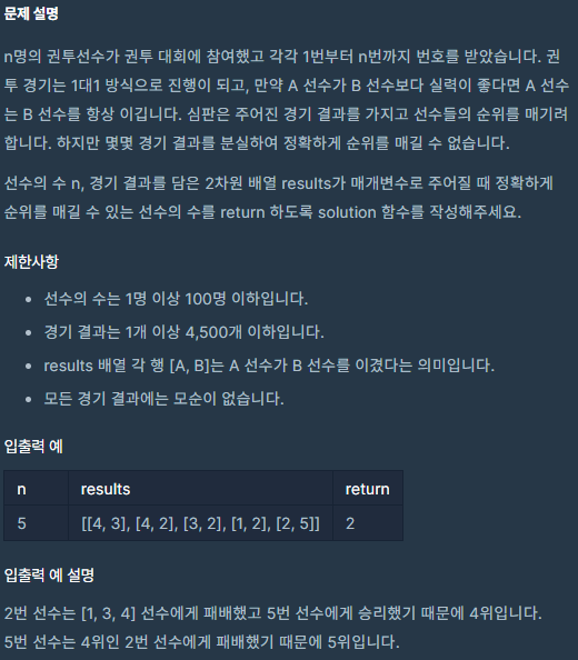 [프로그래머스] 순위 - 파이썬(Python) 본문
