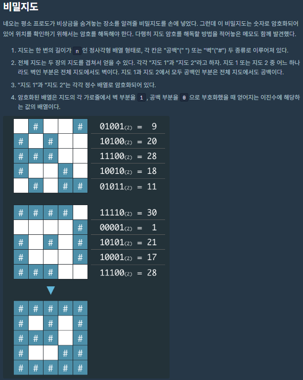 코딩테스트 연습 - [1차] 비밀지도