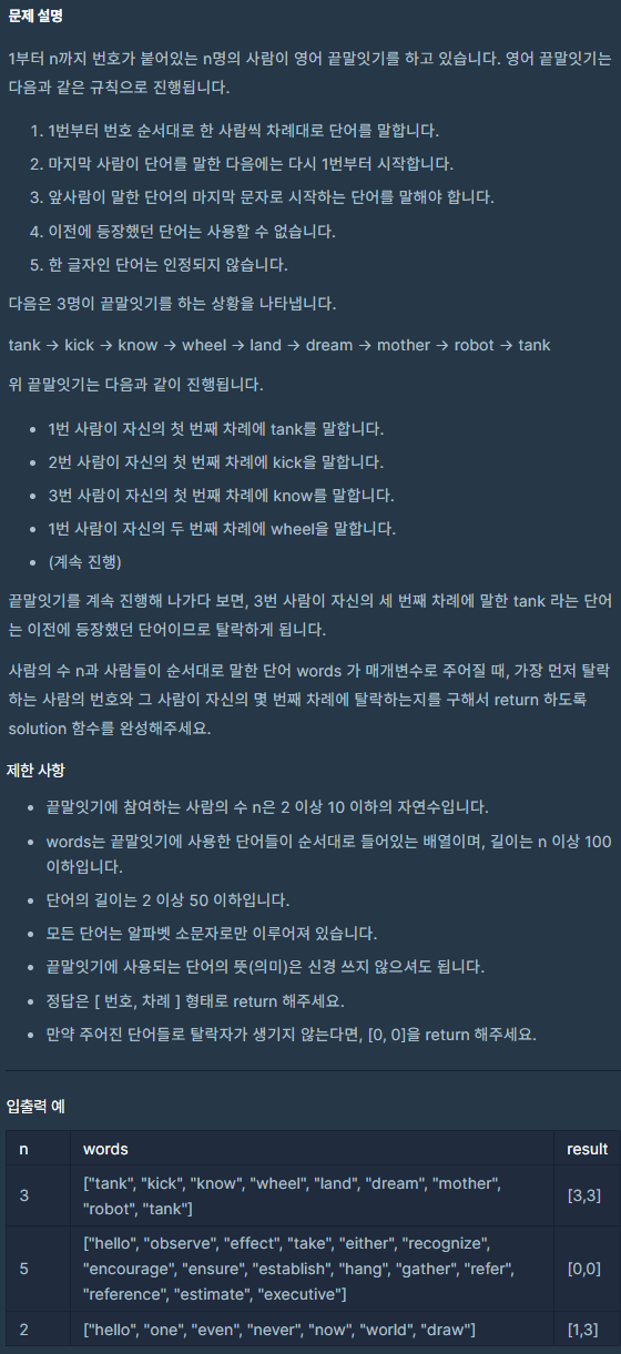 코딩테스트 연습 - 영어 끝말잇기