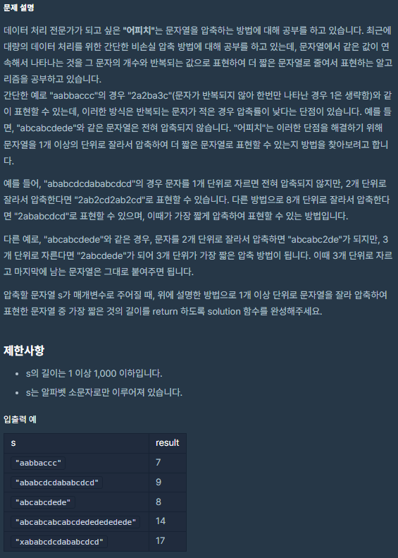 [프로그래머스] 문자열 압축 - 파이썬(Python) 본문