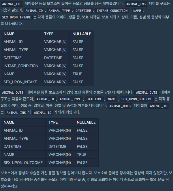 [프로그래머스] 보호소에서 중성화한 동물 - MySQL