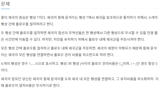 [파이썬, Python] 백준 16398번 : 행성 연결 본문